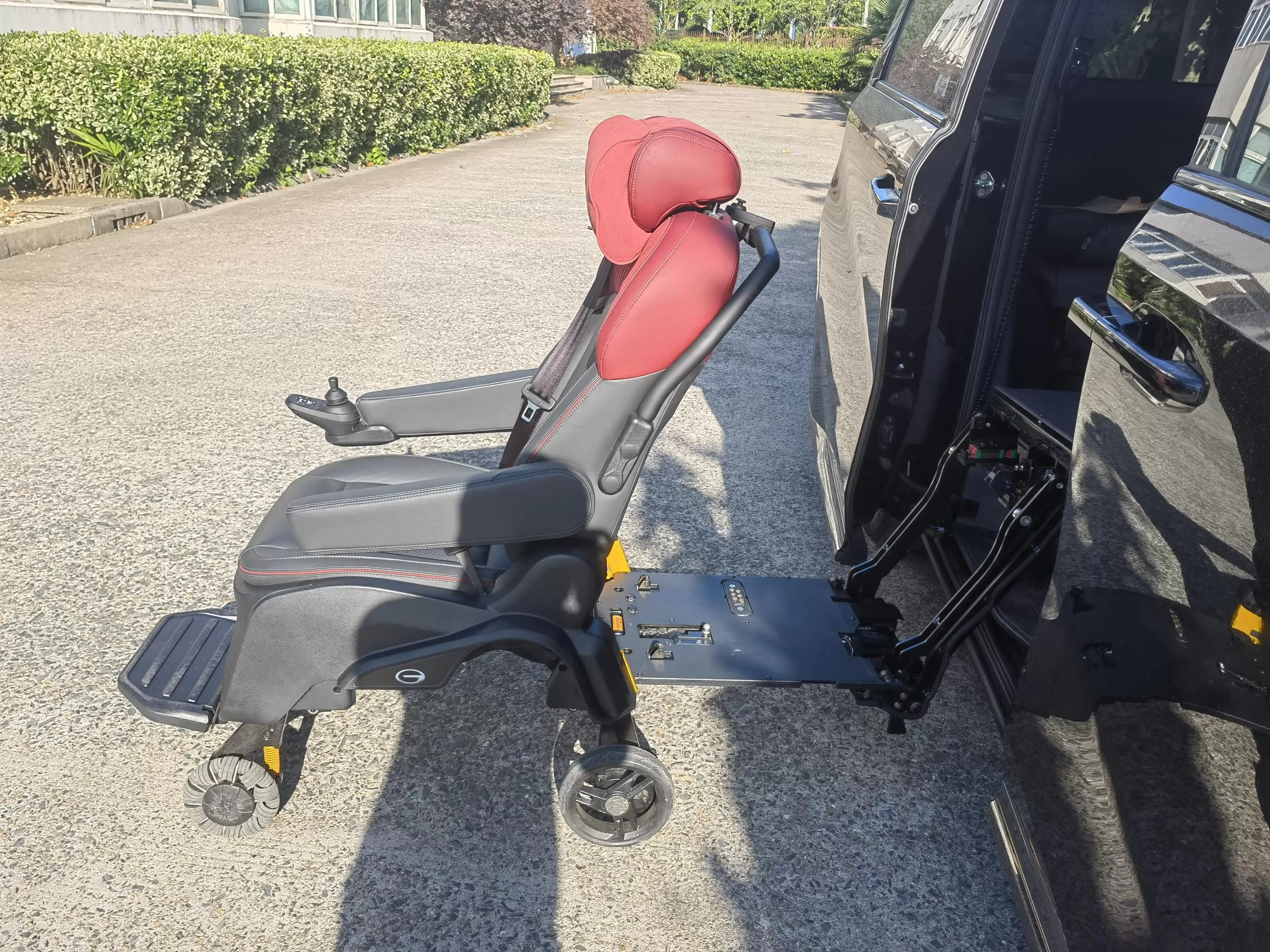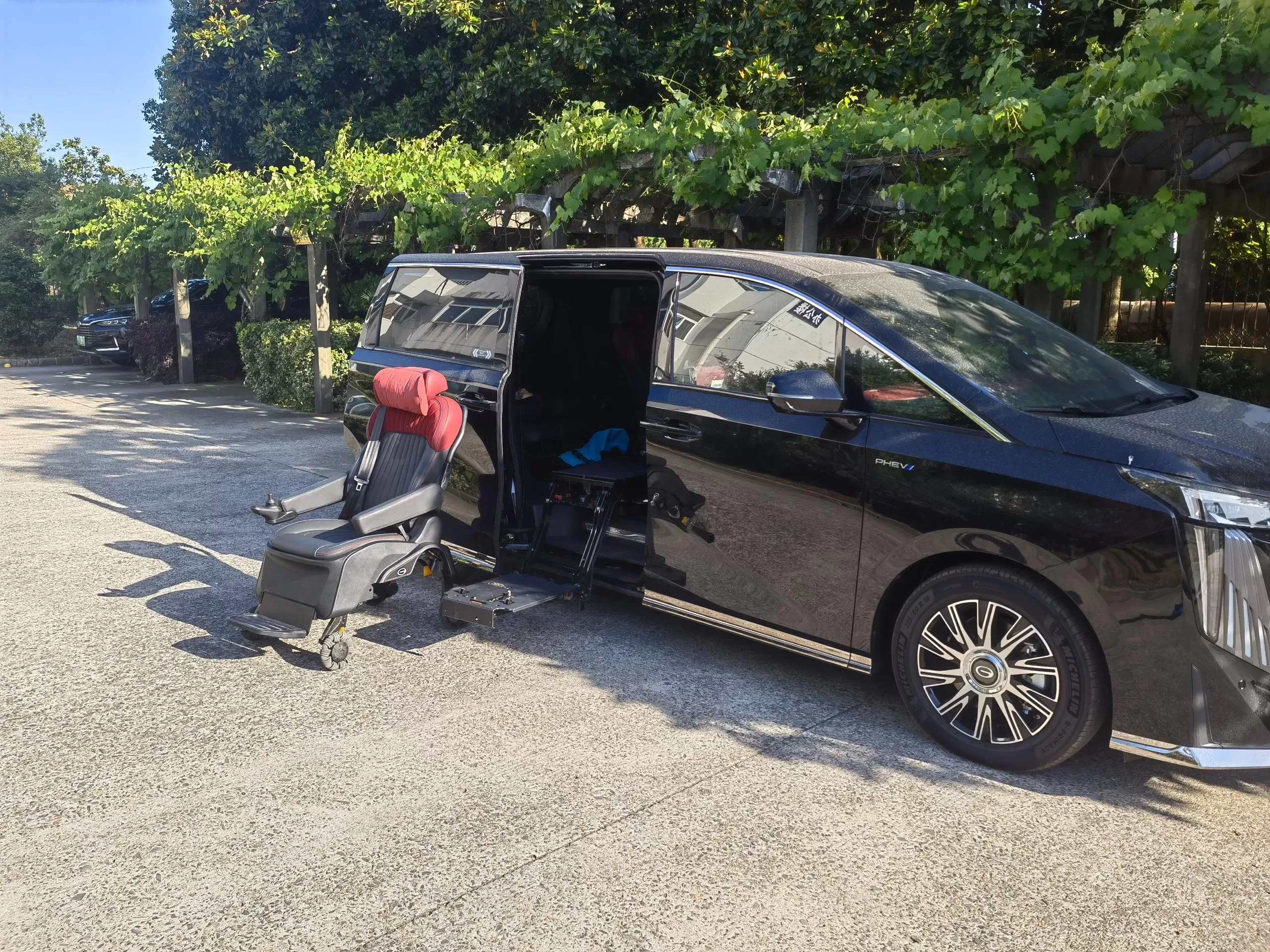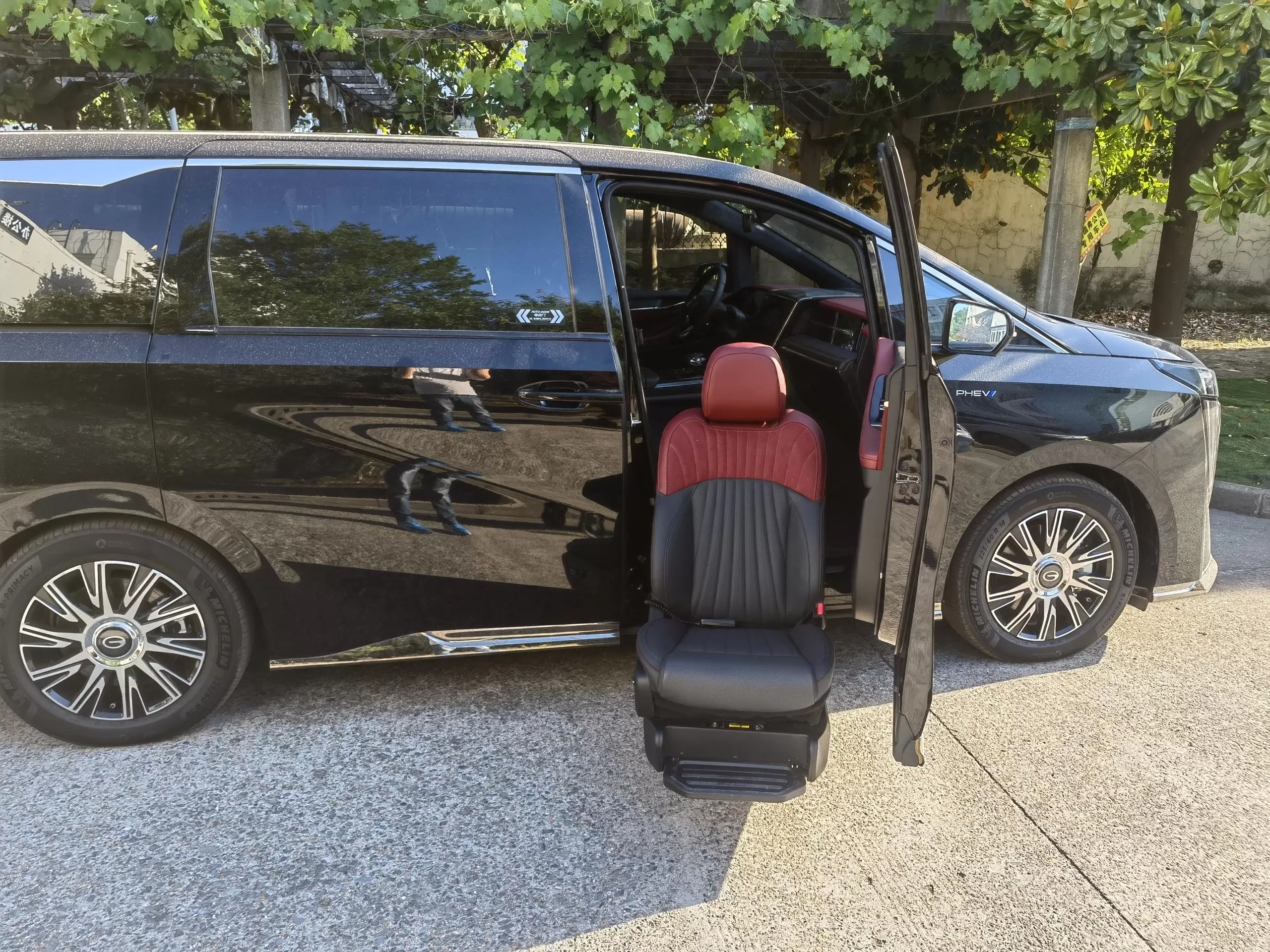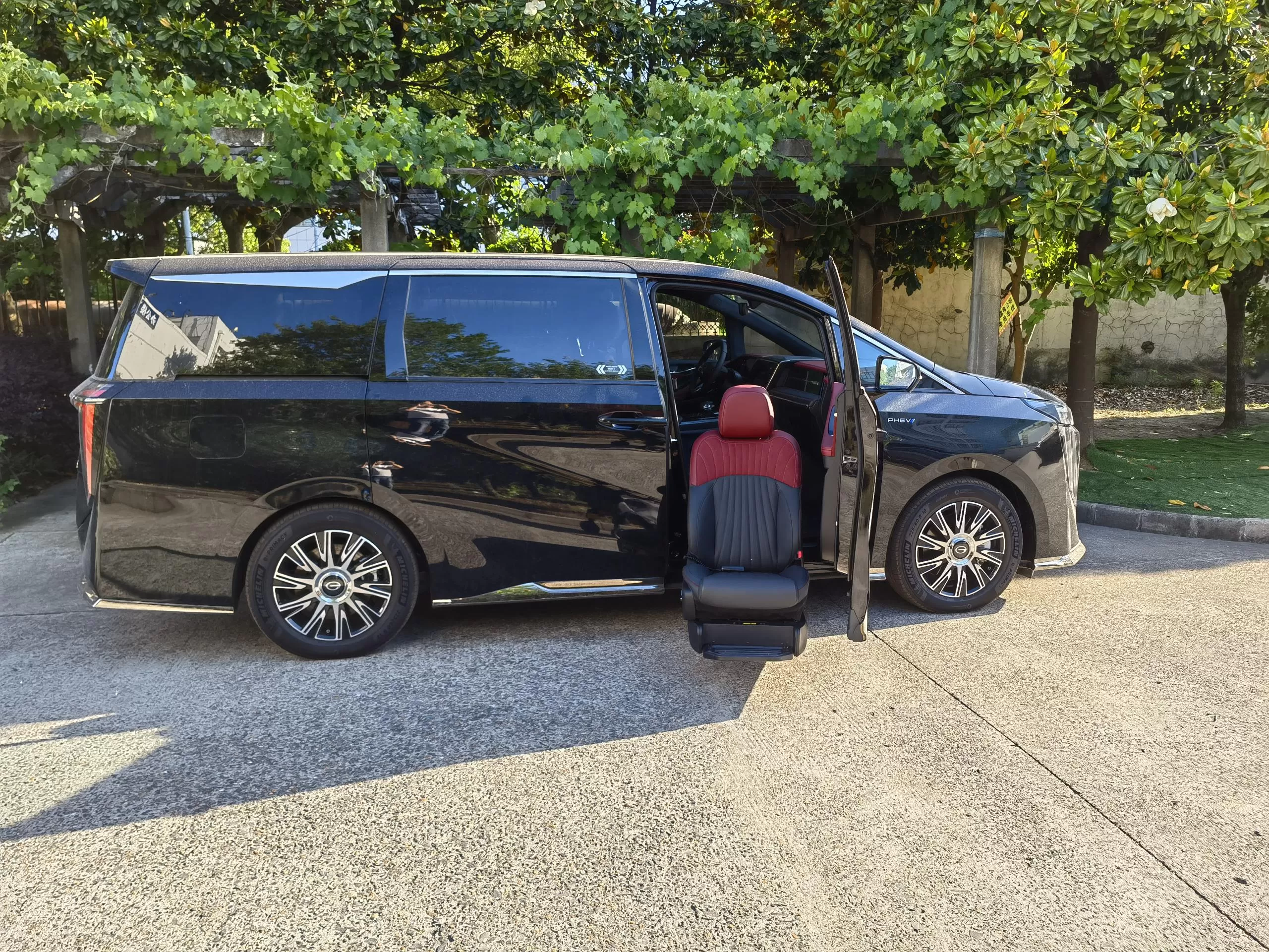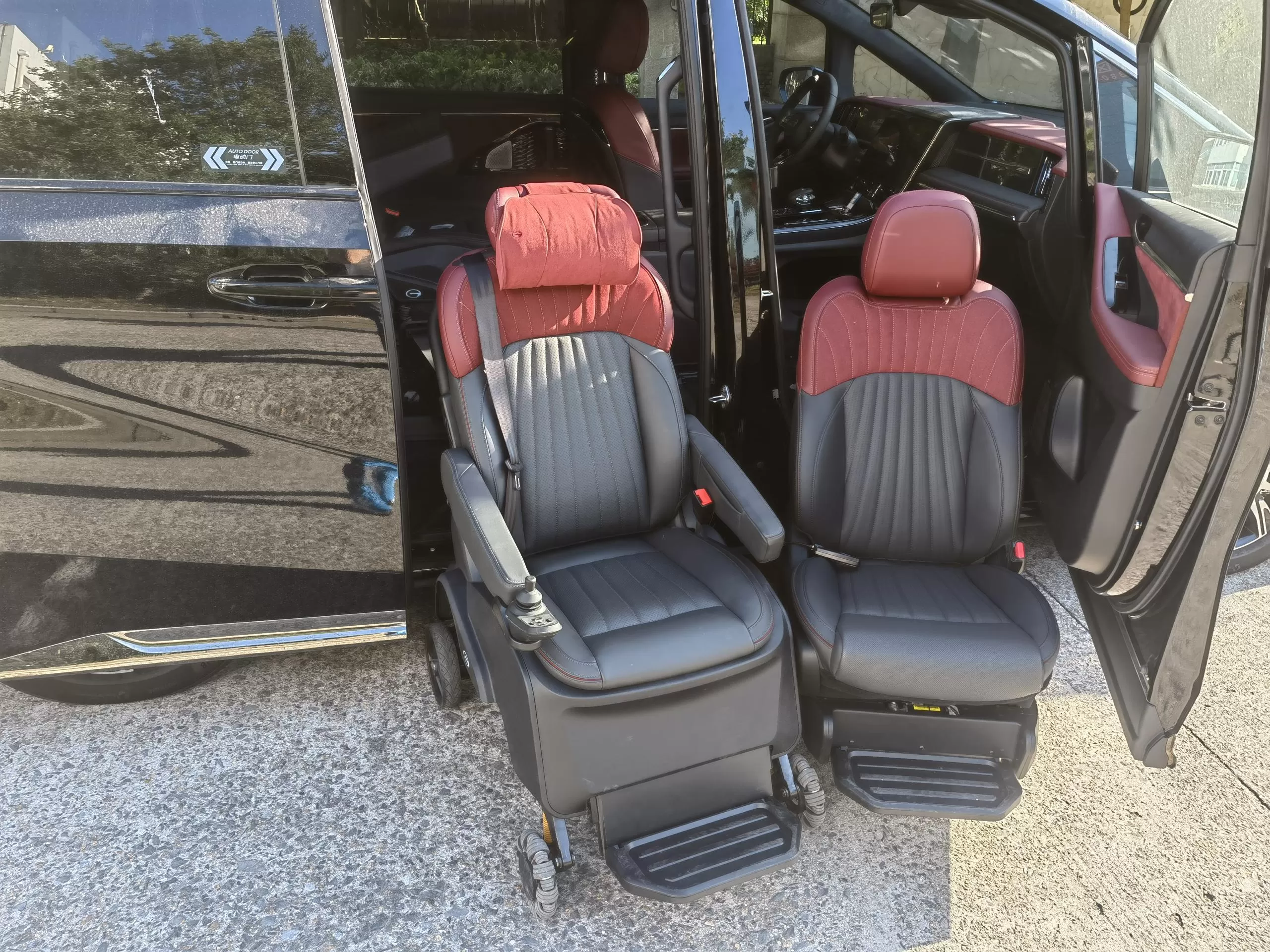 Detalhes: Este novo E9 de energia Trumpchi foi modificado com um assento de bem-estar dividido Xinder-tech na fila do meio, equipado com um assento móvel elétrico, o mesmo interior do assento do carro original, e controlado por um controlador de mão com fio; o novo assento giratório V2 foi modificado no assento do co-piloto, O assento do carro original foi modificado, o interior não foi alterado e um controlador manual com fio o controla.